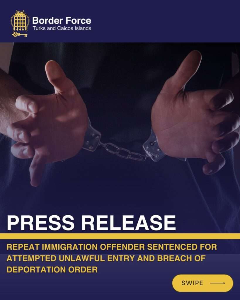 The Turks and Caicos Islands Border Force confirms that Haitian national Richardson Cherefaere has been sentenced to 16 months’ imprisonment by the Magistrates Court on 3 June 2025, following charges of Attempted Unlawful Entry and Returning to the Islands Contrary to a Deportation Order. Cherefaere is a repeat immigration offender with a history of attempting to unlawfully re-enter the Turks and Caicos Islands. His first illegal entry occurred in 2019, and he was subsequently convicted and deported in January 2025 following his most recent attempt to re-enter the country. His continued disregard for immigration laws and deportation directives has resulted in a substantially longer custodial sentence. In response, Hon. Jamell Robinson, Deputy Premier and Minister of Immigration and Border Services, states, “This significant sentence sends an unequivocal message: the Turks and Caicos Islands Border Force will relentlessly pursue and prosecute anyone who deliberately defies our immigration laws and ignores deportation orders. We are unwavering in our commitment to secure our borders and uphold the rule of law with the full force it demands, ensuring justice is served every time.” The public is strongly reminded that harbouring or facilitating the illegal entry of migrants is a serious criminal offense punishable by fines up to $20,000 and imprisonment for up to four years under the Immigration Ordinance. Anyone found in breach of these laws will face firm and immediate legal action.